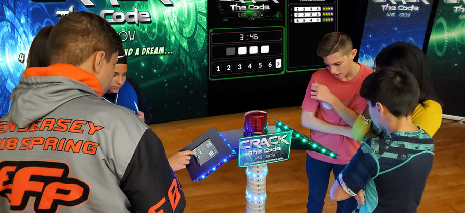 Utilizing STEM principles, two code-breaking teams go head-to-head to see who can crack their code the fastest. After each code attempt is entered, the contestants will see how many correct numbers they have and how many are in the correct position. With thousands of possible code combinations, intense music, an enthusiastic audience, and only 10 guesses in 4 minutes to be the one to crack the code, every game is guaranteed to be an exciting brain-bender.
